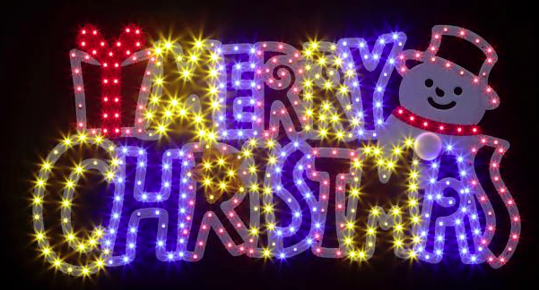 カラフルなメリークリスマスのタイトルは、どこに飾ってもかわいいイルミネーションです。常点灯の中の一部分が自動点滅し、キラリとアクセントになっています。壁やベランダ、フェンスなどの空間に飾ってお楽しみ下さい。LEDのクリスマスイルミネーションをはじめ、かわいい飾り物まで通販で販売しています。